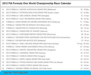 Home f1_calendar 2012 « 2012 FIA Formula One World Championship Race Calendar Home Mar 19th, 2012 Comments: 0 f1_calendar 2012 Tags Tweet Share this F1 Calendar 2012 Race